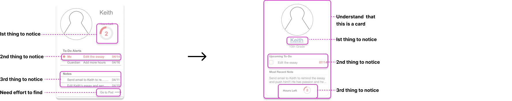 How mentors scan each mentor’s card in the “My Mentors” Page (Before & After)