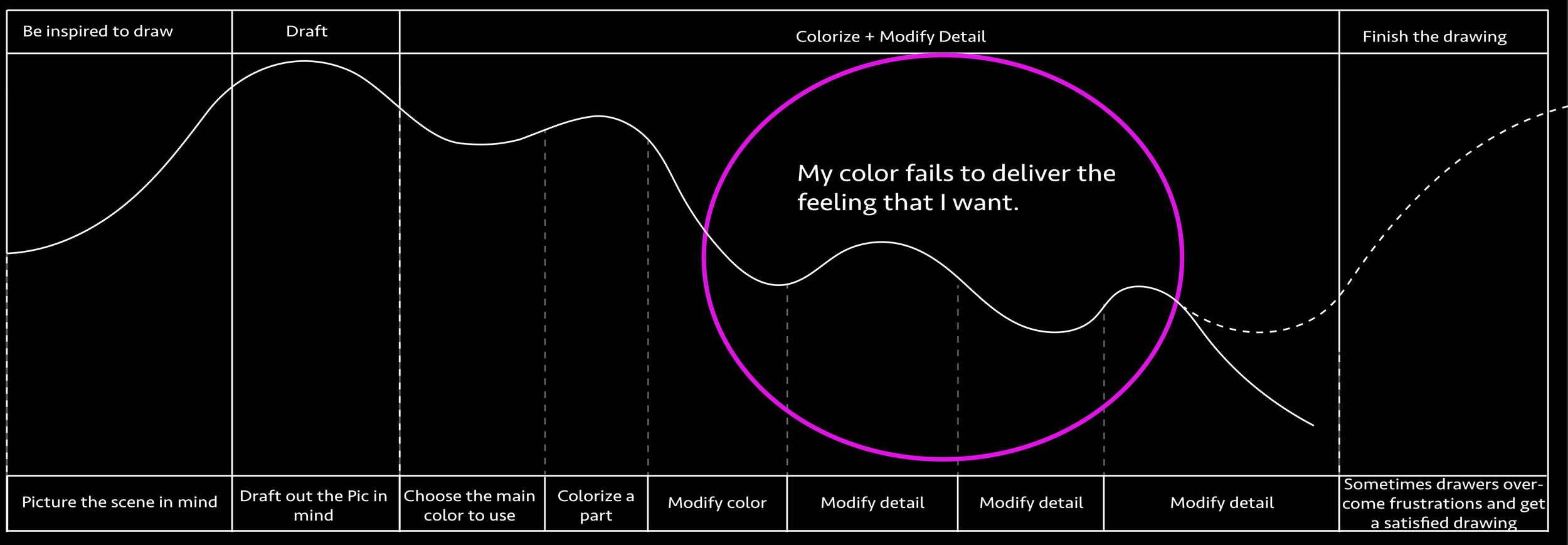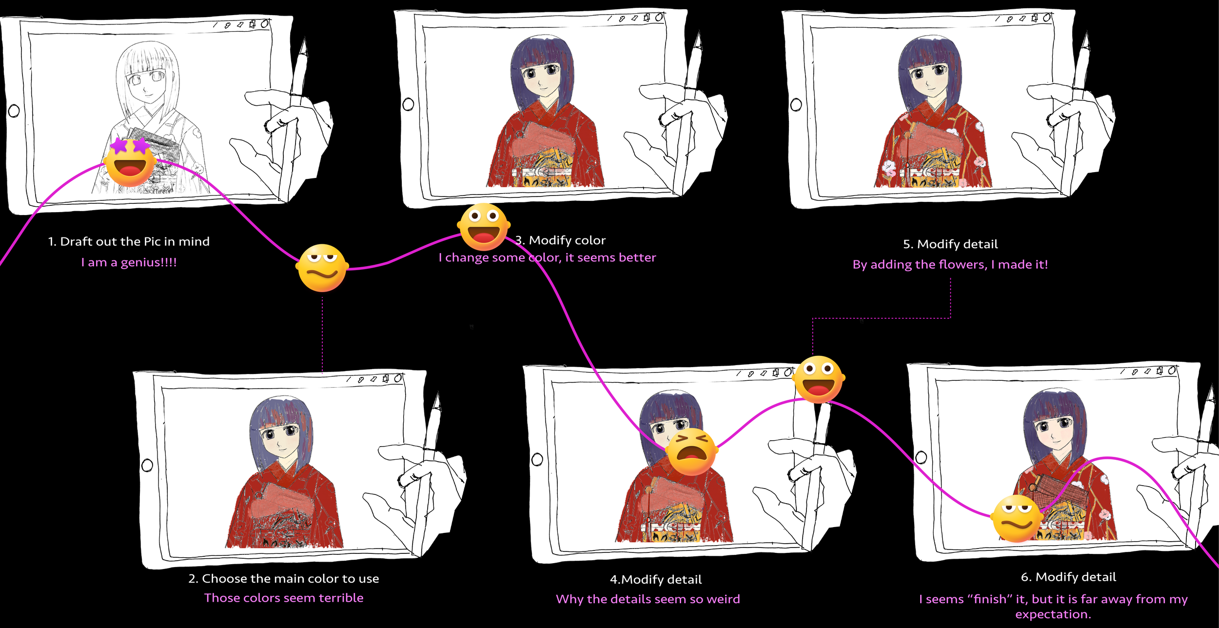 Novice drawers feel frustrated when drawing the color and details because they don’t have the high-definition finished drawing in mind. Their drawings in mind are obscure.