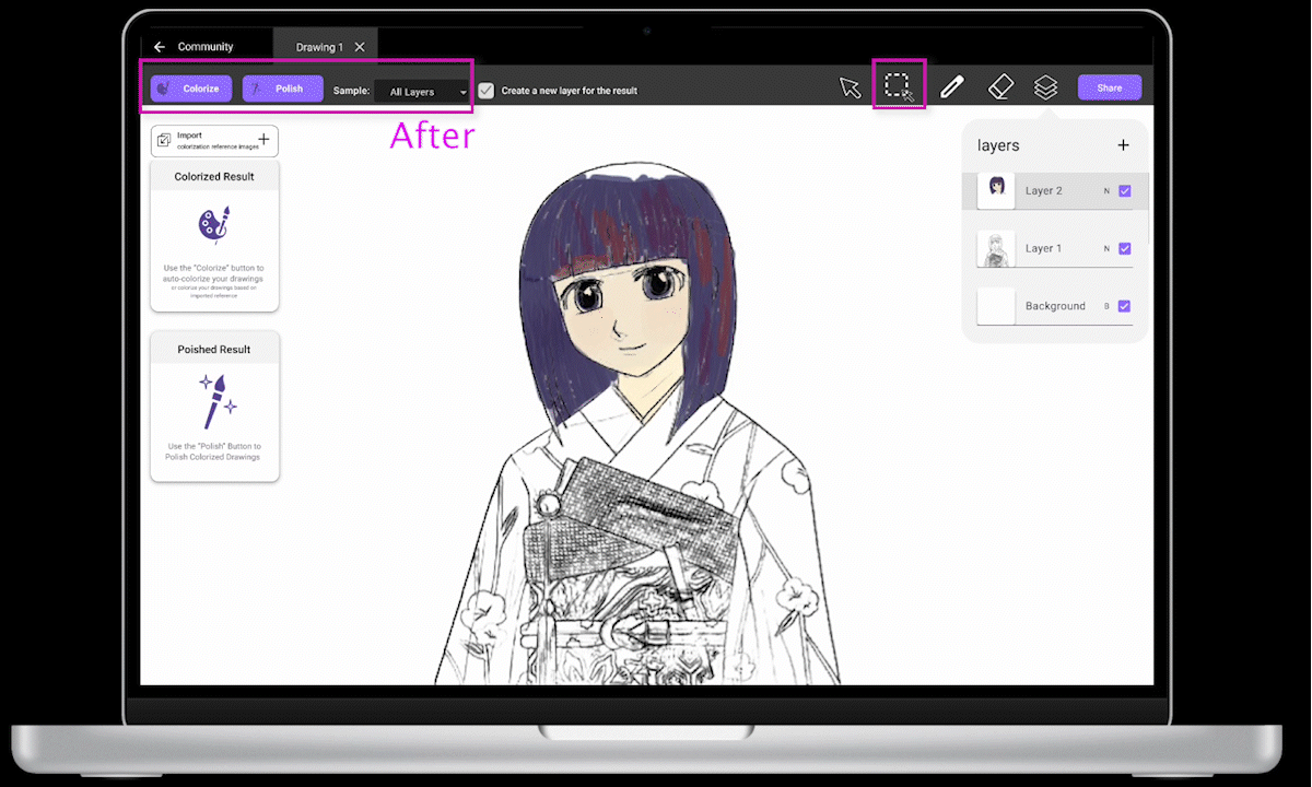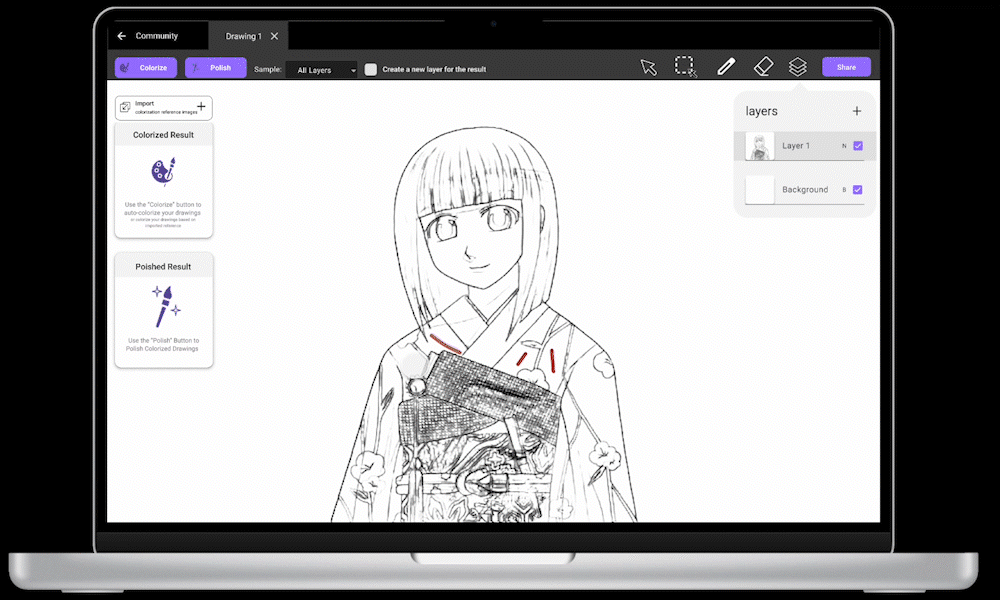 How hard can you combine this tool in your drawing flow by seamlessly switching from drawing by hand to auto-colorization/polishment?