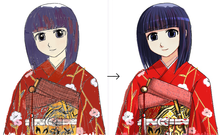 The result of the polishment is the finished colorized drawing exported from the model when the training epoch is 500. It contains more details and polishes the relationship between light and shadows. When users are stuck on refining the details, users can get a polished result from our tool.