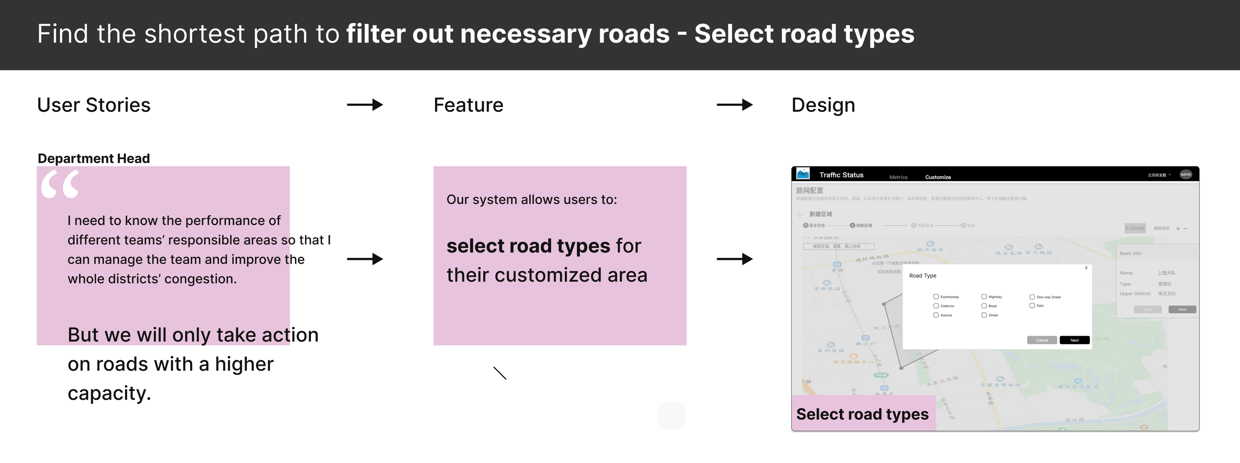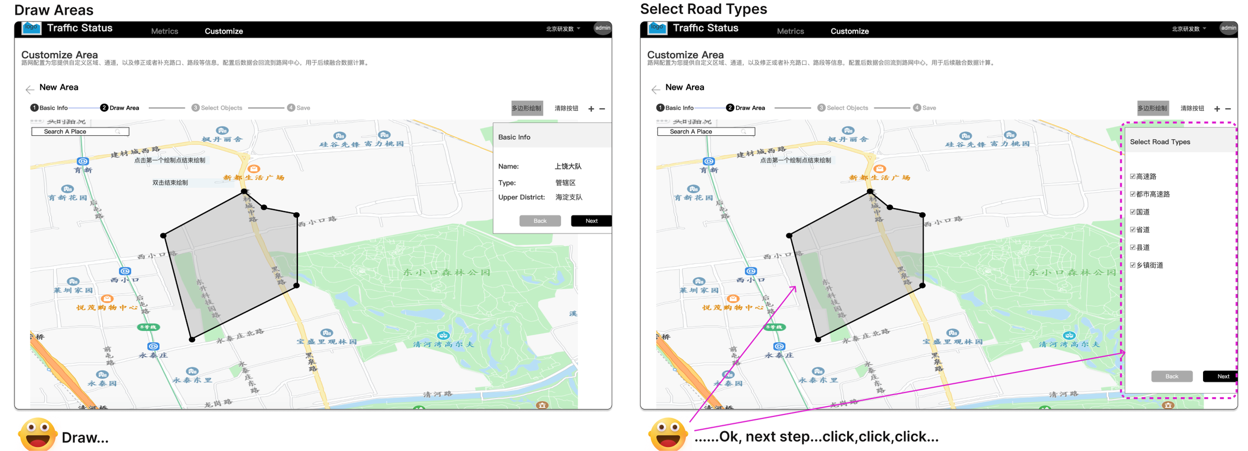 There might be thousands of road sections in various types within an area. And operators (end-users) need a fine-grained customization feature that allows them to select which roads should contribute to the customized metrics. This could be a tedious, frustrating, error-prone, and inefficient process.