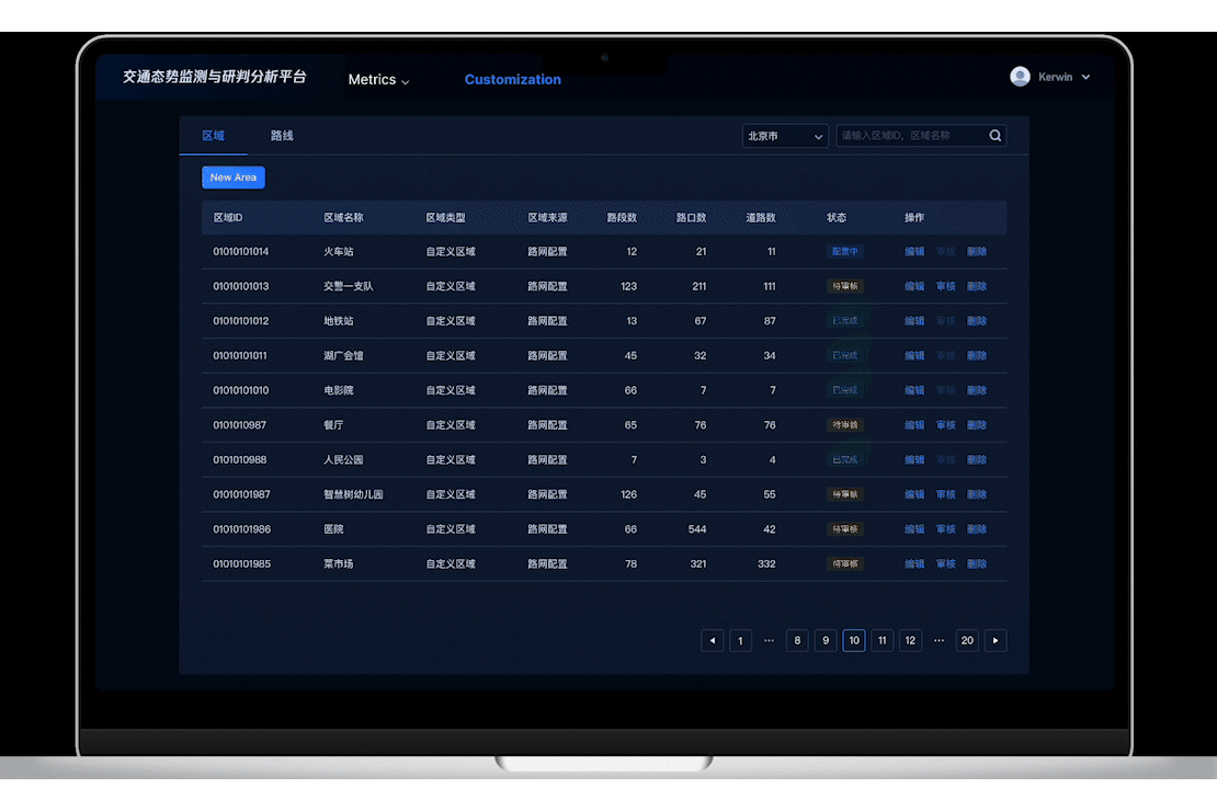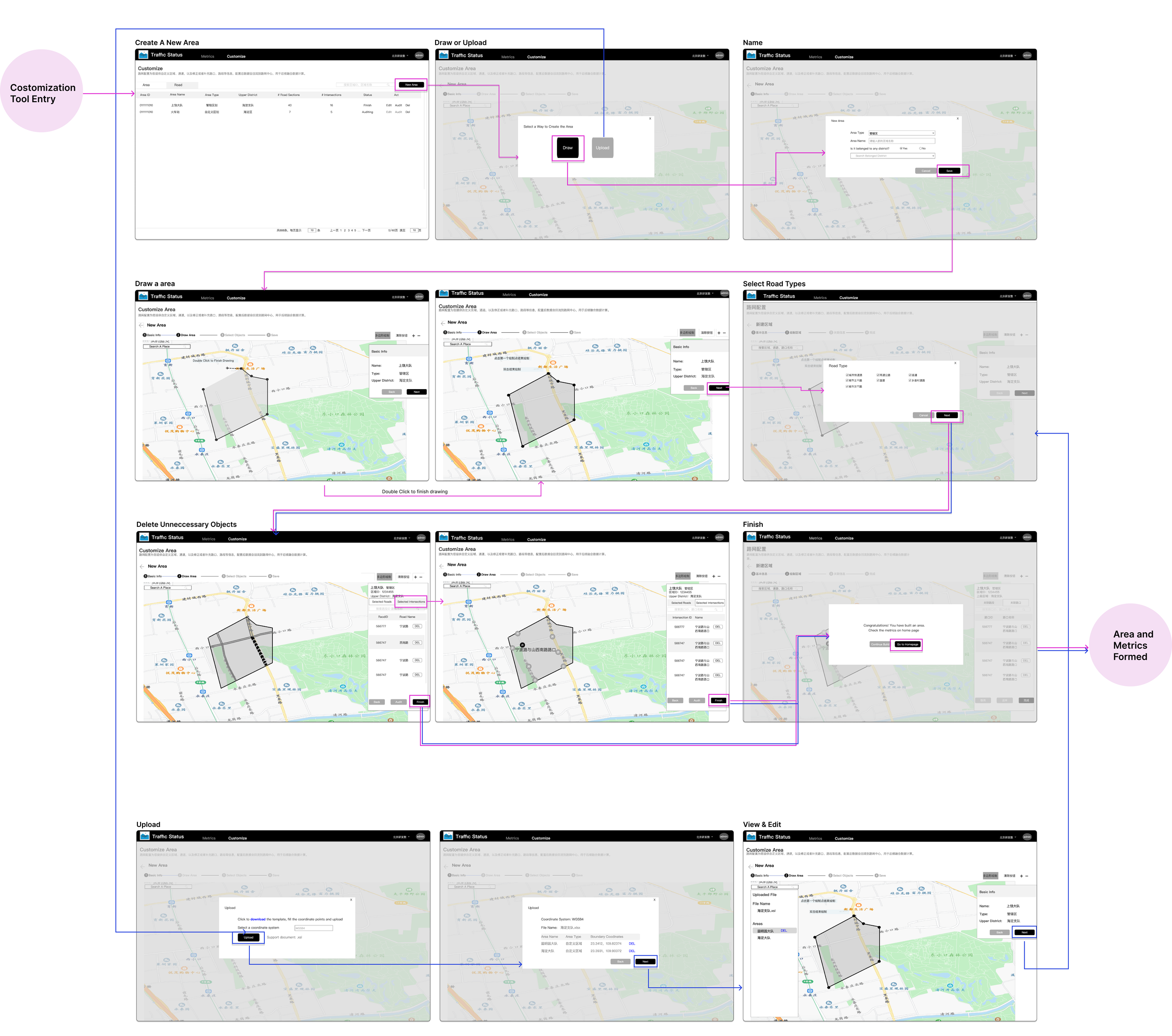 One-click to show any customized area’s metrics and its roads rank & metrics.