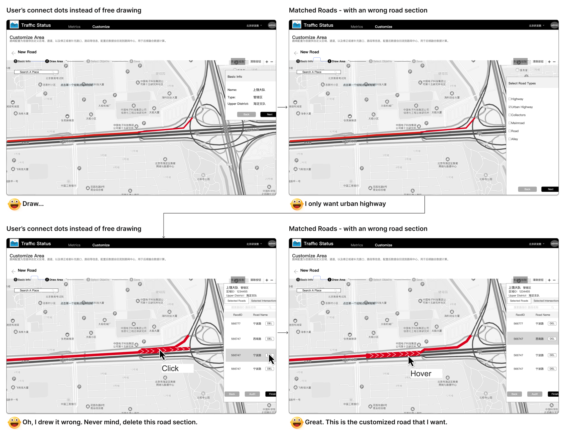 Roads are intricate and intertwined with each other. Users are easy to make mistakes. How can we let users pleasantly correct errors without letting them do repetitive jobs?