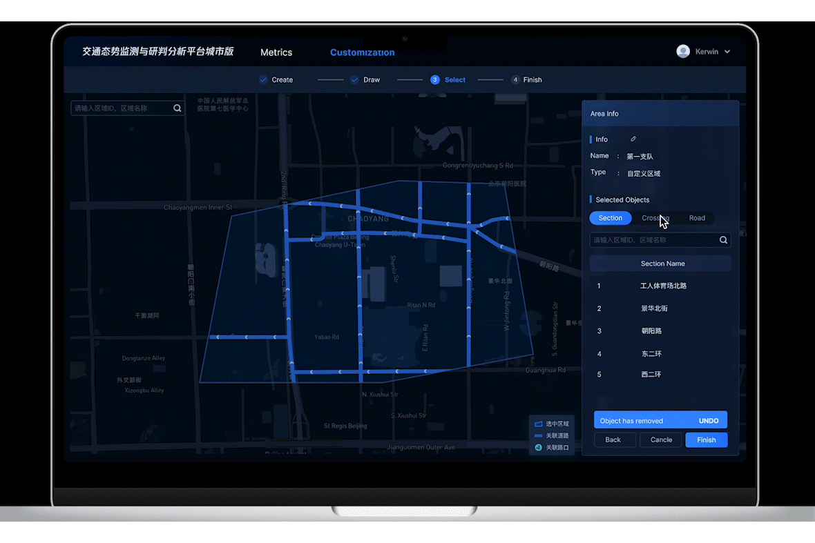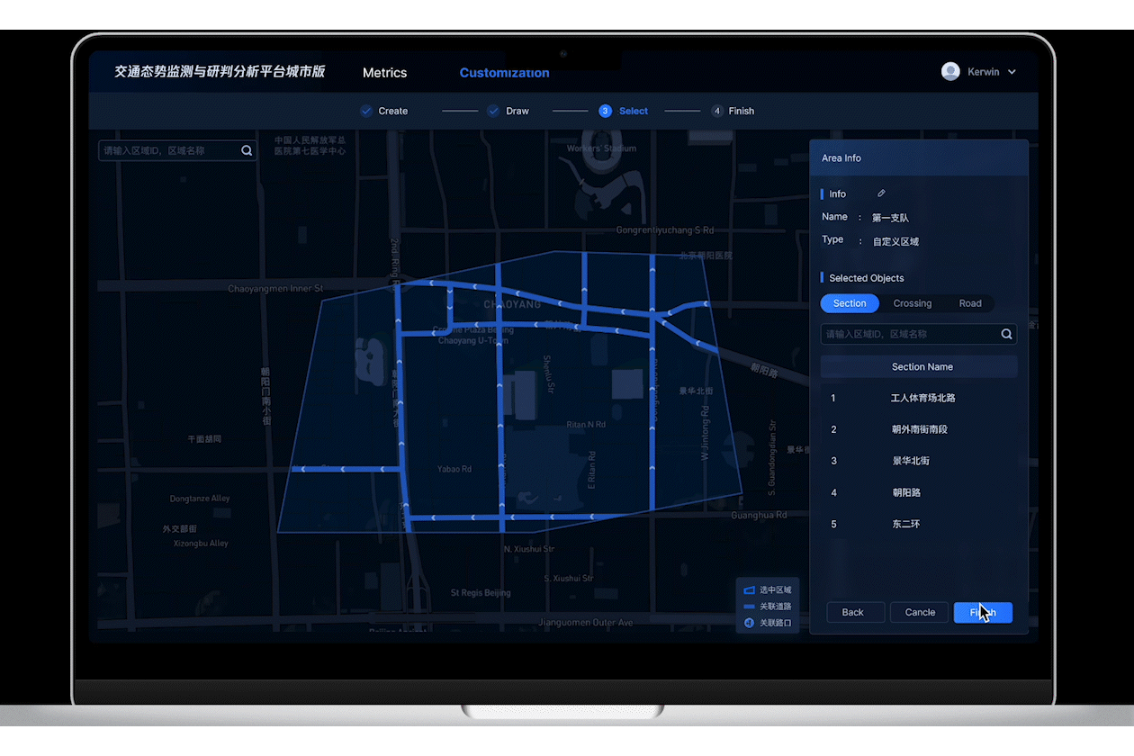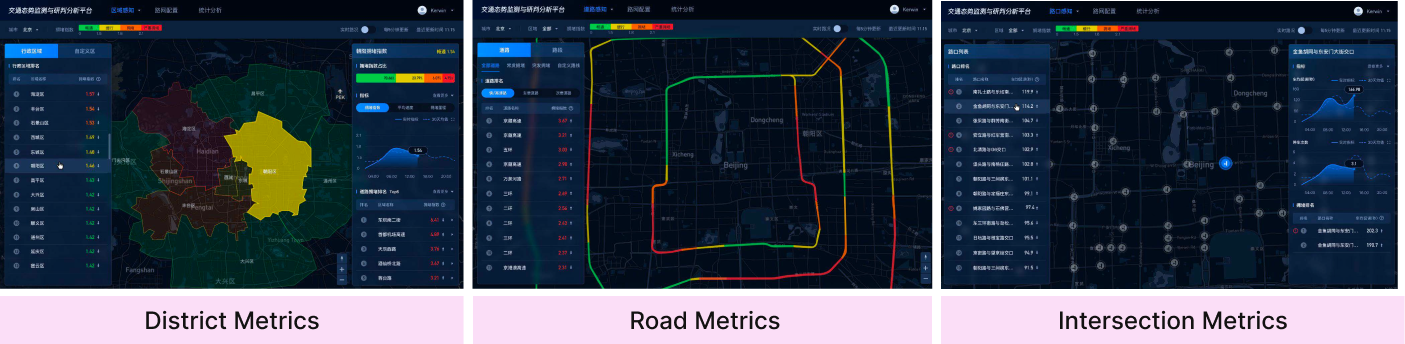 Another click to know customized road metrics, with only selected intersections and road sections, providing insightful metrics about traffic light adjustment.