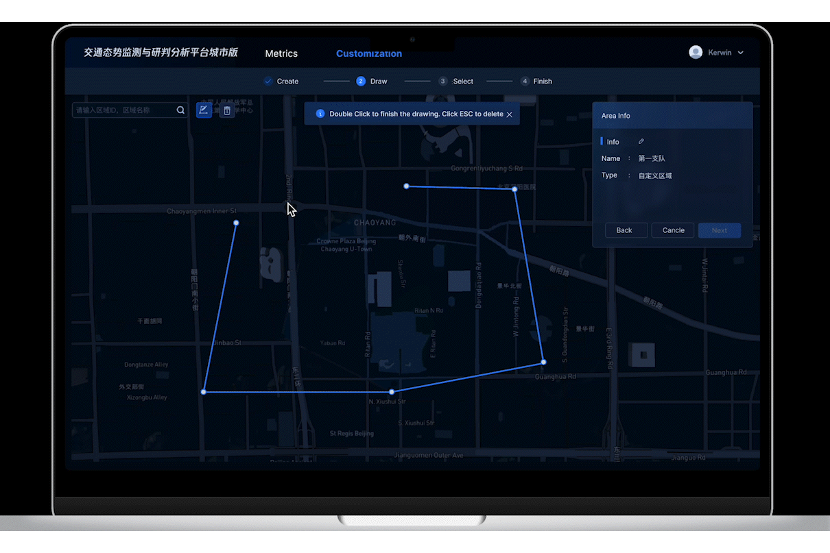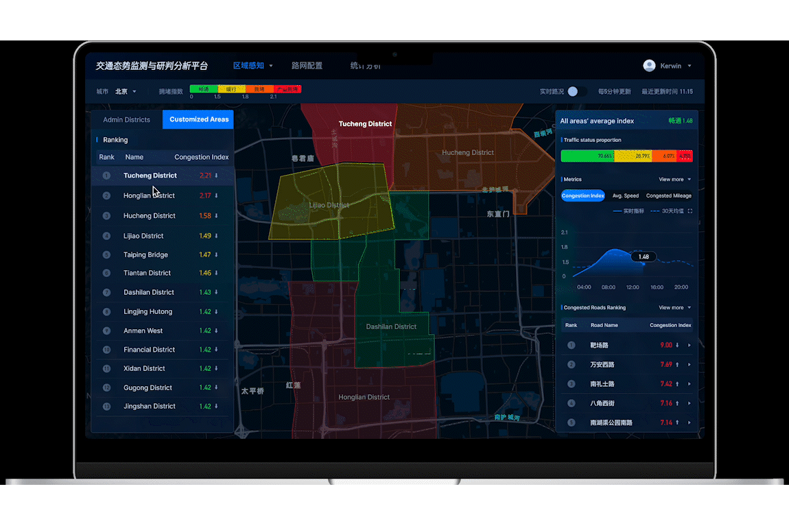 Another click to get the insight metrics about a road in a customized area. - whether it is sudden or frequent congestions and historical data - facilitating decision-making for dispatching traffic policemen.